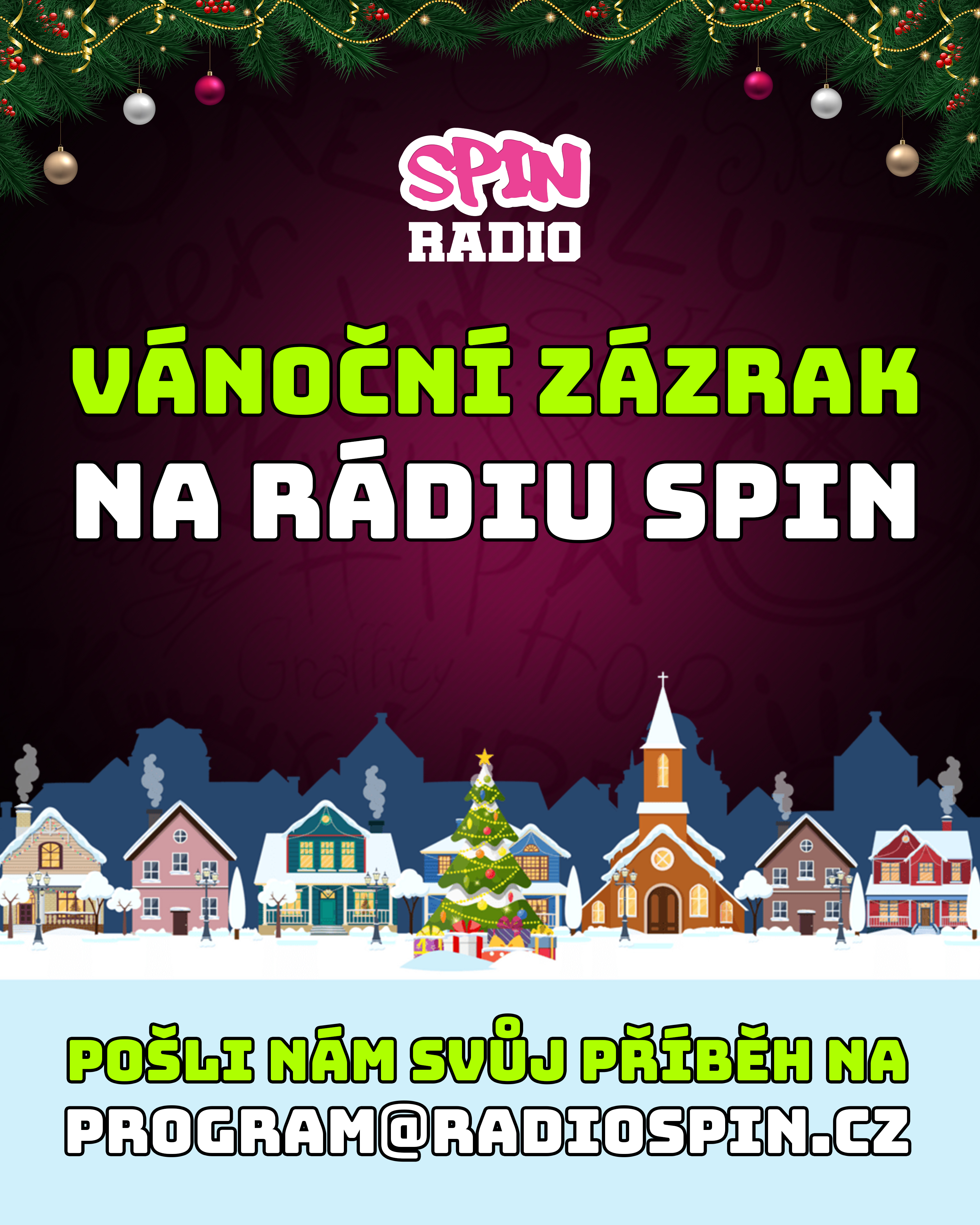 Pošli nám svůj příběh na program@radiospin.cz a pokud Tě vybereme, budeme rádi, když buď osobně nebo přes telefon zkusíš svoji chybu nebo přešlap napravit. Vánoční zázrak na rádiu SPIN zkusíme spáchat ve čtvrtek 18. prosince mezi osmou a devátou ráno.
